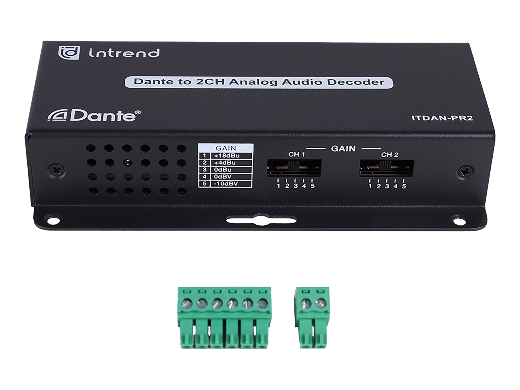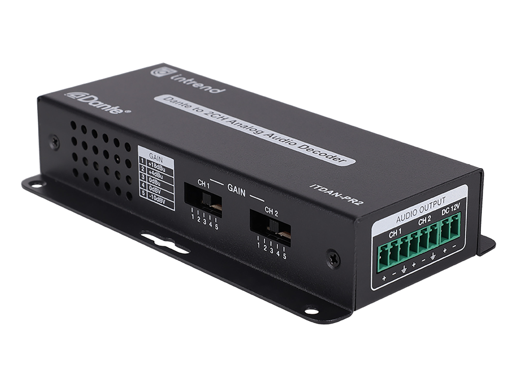 Конвертор из Dante в аналоговый аудиосигнал, с разъёмами Phoenix (6pin). Не требует установки драйверов и программного обеспечения. Поддерживает 2 выходных канала аудио. Компактный дизайн и высокая производительность, питание от PoE.