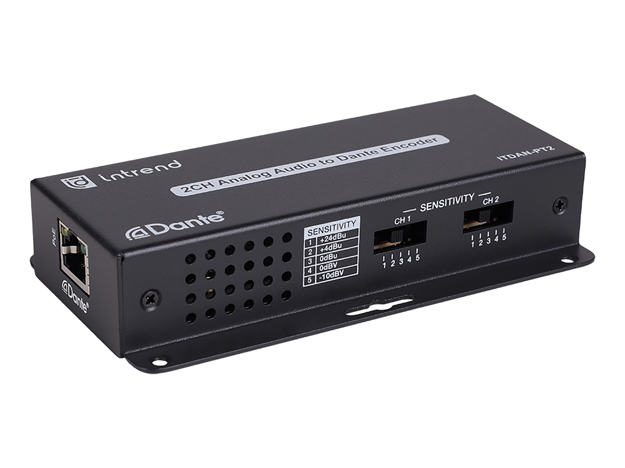 Конвертер из аналогового аудиосигнала в Dante, с разъёмами Phoenix (6pin). Не требует установки драйверов и программного обеспечения. Поддерживает 2 входных канала аудио. Компактный дизайн и высокая производительность, питание от PoE.