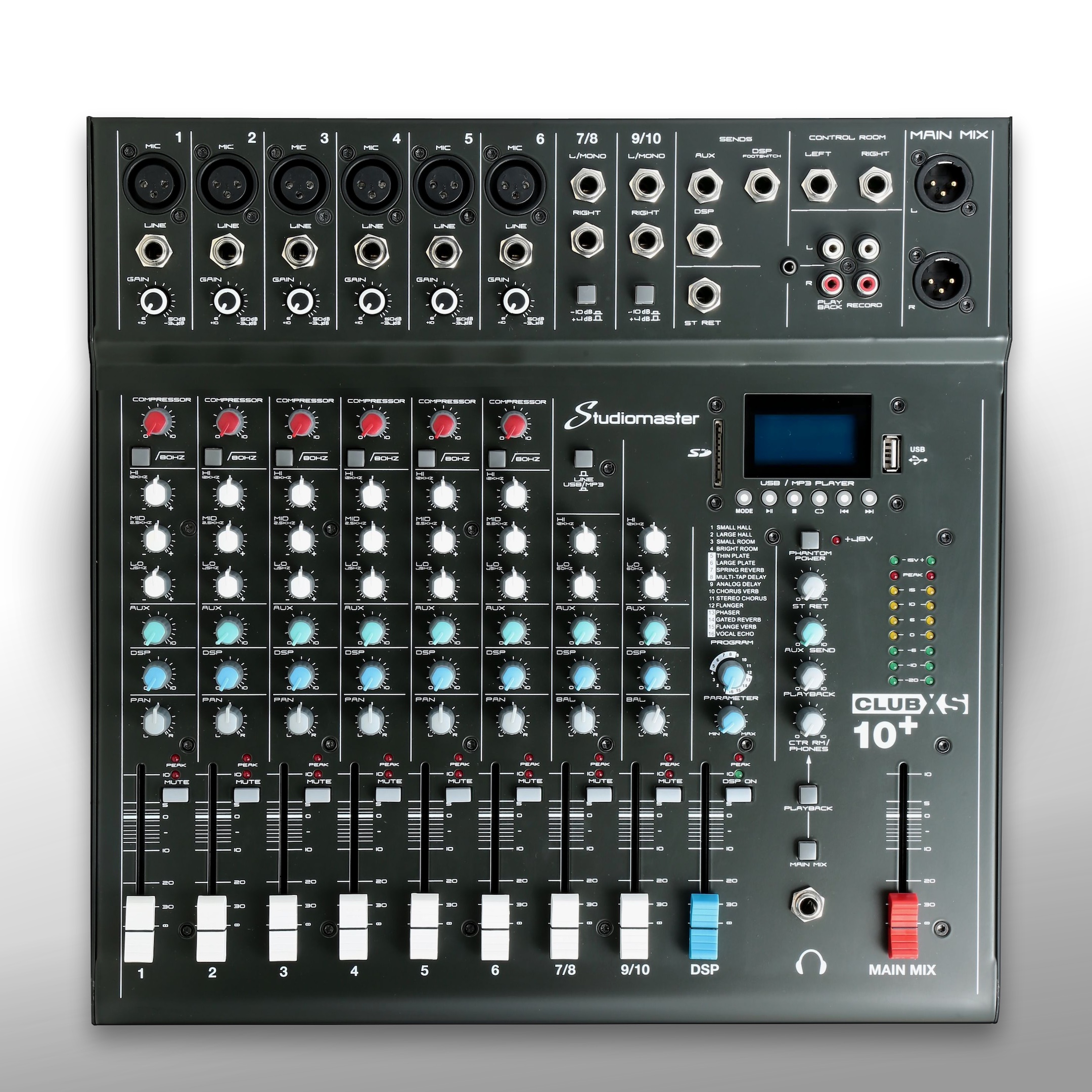 Аналоговый микшер CLUB XS10+ разработан компанией Studiomaster с целью обеспечения достойного качества воспроизведения аудиосигналов от различных источников (каналов) смешивая и обрабатывая их в процессе. Устройство продолжает прекрасно зарекомендовавшую себя на рынке серию CLUB. Микшерный пульт подходит для клубных или фестивальных выступлений DJ, для проведения торжеств и банкетов, при онлайн трансляциях/стримах/записи видеороликов, для репетиций или создания новой музыки в студиях звукозаписи и т.д., и т.п. Рабочий диапазон частот 10 Гц – 20 кГц (+1/-3 дБ).