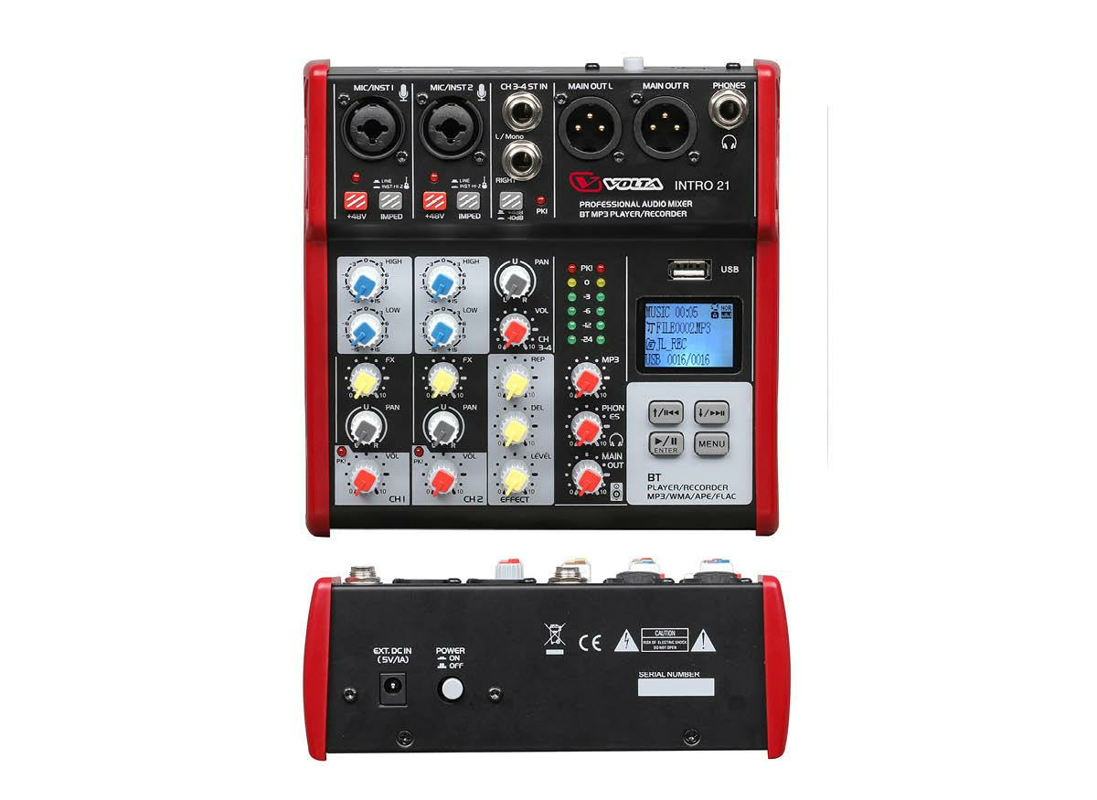 Аналоговый микшерный пульт INTRO 21 разработан компанией VOLTA с целью эксплуатации в составе акустических комплектов используемых в репетиционных залах и муз. классах, в студиях звукозаписи и караоке, на живых концертных выступлениях и на презентациях, а также в составе инсталляционных систем фонового озвучивания разнообразных помещений.