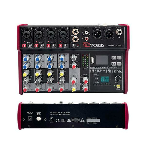 Аналоговый микшерный пульт INTRO 41 ULTRA разработан компанией VOLTA с целью эксплуатации в составе акустических комплектов используемых в репетиционных залах и муз. классах, в студиях звукозаписи и караоке, на живых концертных выступлениях и на презентациях, а также в составе инсталляционных систем фонового озвучивания разнообразных помещений.