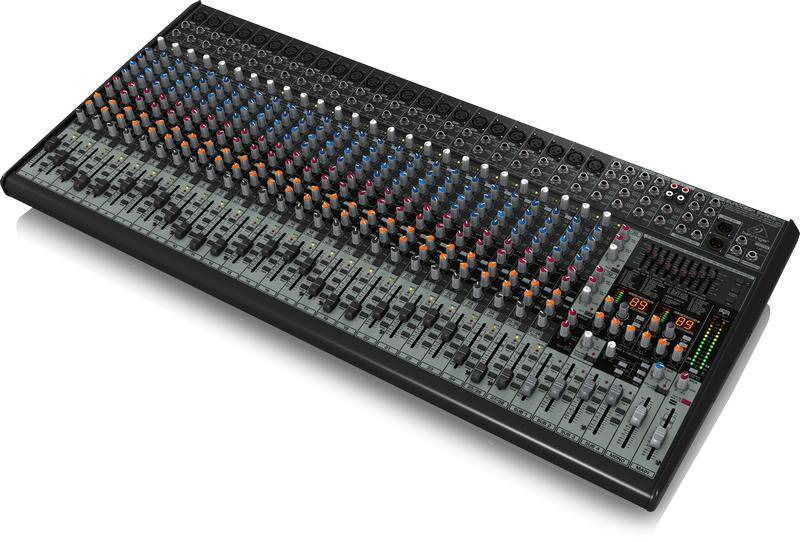 Behringer SX3242FX – профессиональный микшерный пульт c встроенными двумя стерео процессорами эффектов на 100 пресетов включая мульти эффекты. Тридцать два входных регулируемых канала, с четырьмя линиями AUX на каждом канале – две для регулировки громкости эффекта посылаемого из встроенного процессора или внешнего, две для независимых посылов в монитор или прочие устройства. 4 SUB группы существенно облегчают работу с такими сложными музыкальными инструментами как барабаны, духовой бэнд, группа бэк вокала. Стерео выход Main Mix имеет позолоченные разьемы XLR и ¼ выход, отдельный моно выход, стерео выход для мониторов, выход для наушников, а также не регулируемый Tape in/out на RCA разъемах.