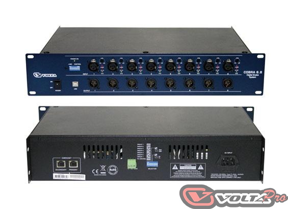 VOLTA COBRA 8.8 – это высококлассный цифровой мультикор (Stagebox), предназначенный для надежной передачи/приема в цифровом формате некомпрессированных звуковых сигналов высокого качества на большие дистанции с минимальной задержкой и очень низким уровнем шумов. Устройство позволяет существенно расширить число аналоговых каналов подключения к цифровым микшерам и другим подобным приборам. Обмен данными осуществляется посредством стандартной сети Ethernet с применением протокола CobraNet.