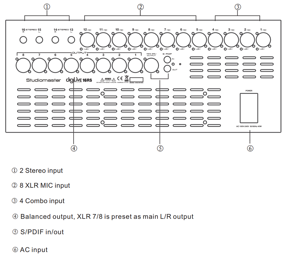 | MIC Input: | 12 channels 8 x XLR/4 x COMBO XLR/JACK |