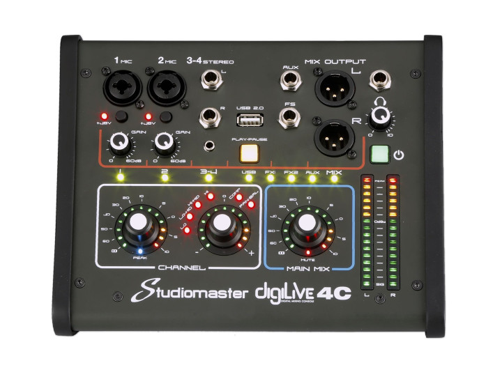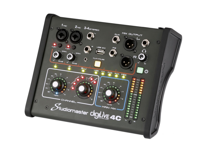 Цифровой микшерный пульт DIGILIVE 4СH разработан компанией Studiomaster с целью обеспечения отличного качества воспроизведения аудиосигналов от различных источников (каналов) смешивая их и обрабатывая в процессе. Переносной микшерный пульт подходит для клубных или фестивальных выступлений DJ, для проведения выездных мероприятий, при онлайн трансляциях/стримах/записи видеороликов, для репетиций на студиях звукозаписи и т.п.