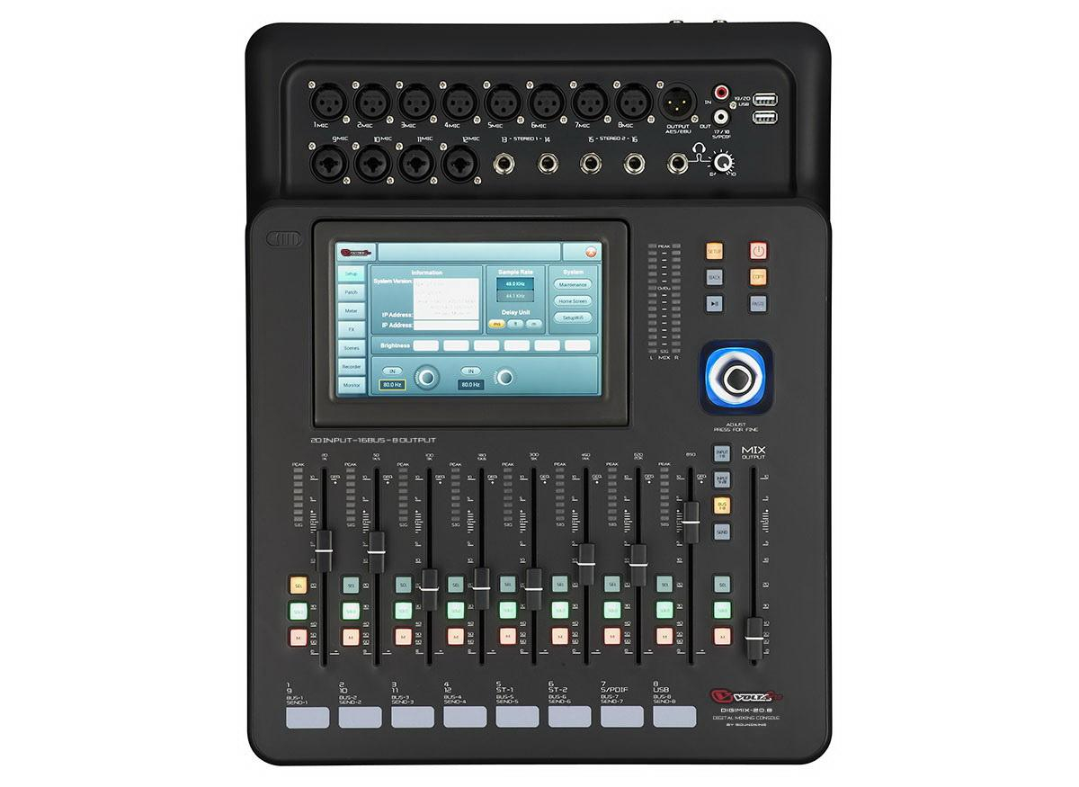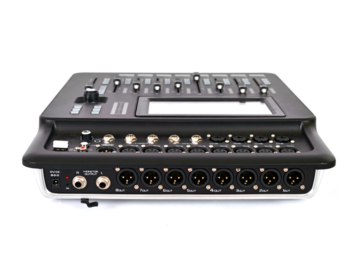 Профессиональный микшерный пульт DIGIMIX 20.8 обладает стильным и современным дизайном. Помимо регуляторов присутствуют 9 моторизованных прецизионных фейдеров 100 мм и сенсорный полноцветный ЖК-дисплей с диагональю 7" для работы со встроенным меню и настройками DSP. Интуитивно-понятная эксплуатация. Габаритные размеры 350x380x150 мм, вес 4 кг. Питание AC 220В.