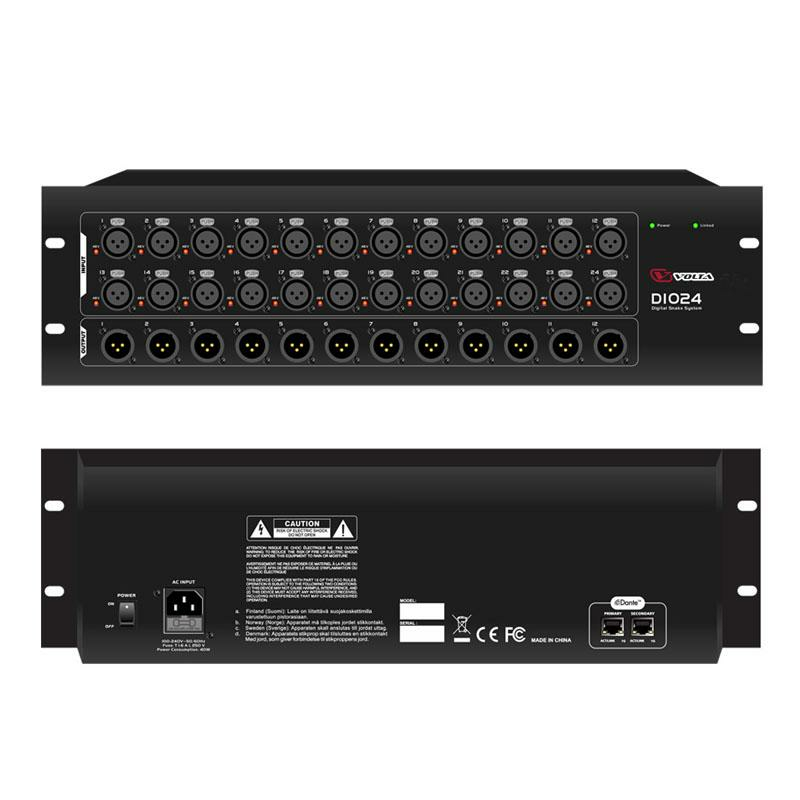 VOLTA DIO24 – это высококлассный цифровой мультикор (Stagebox), предназначенный для надежной передачи/приема в цифровом формате некомпрессированных звуковых сигналов высокого качества на большие дистанции с минимальной задержкой и очень низким уровнем шумов. Устройство позволяет существенно расширить число аналоговых каналов подключения к цифровым микшерам и другим подобным приборам. Обмен данными осуществляется посредством стандартной сети Ethernet с применением протокола Dante.