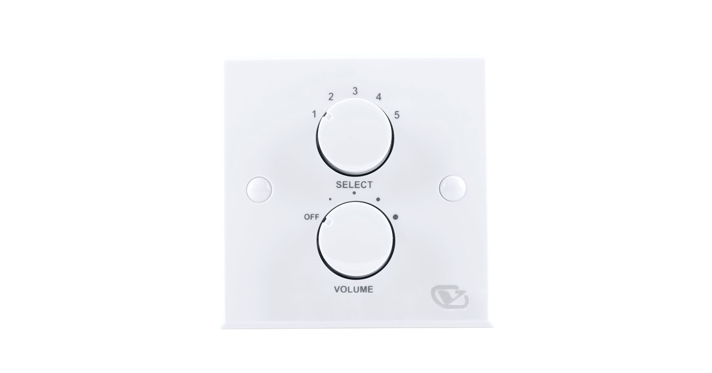VOLTA VC-5120RS - объединяет в себе две функции: настенный регулятор громкости (аттенюатор) и селектор программ. Устройство предназначено для управления уровнем громкости в выбранной зоне системы музыкально-речевых трансляций и аварийного оповещения, а также выбора источника сигнала, который будет вести трансляцию в данной зоне.