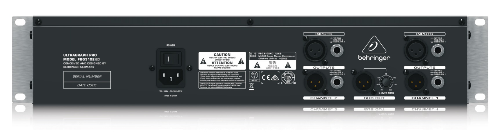 Стерео-эквалайзер 31-полосный; детектор обратной связи FBQ; обрезные ВЧ и НЧ фильтры; hard-bypass; LED; 2 входа XLR/TRS; 2 выхода XLR/TRS; 1 выход XLR на сабвуфер; 220 В; 483х89х150 мм (19'' 2U); 2.64 кг (СНЯТ С ПРОИЗВОДСТВА).