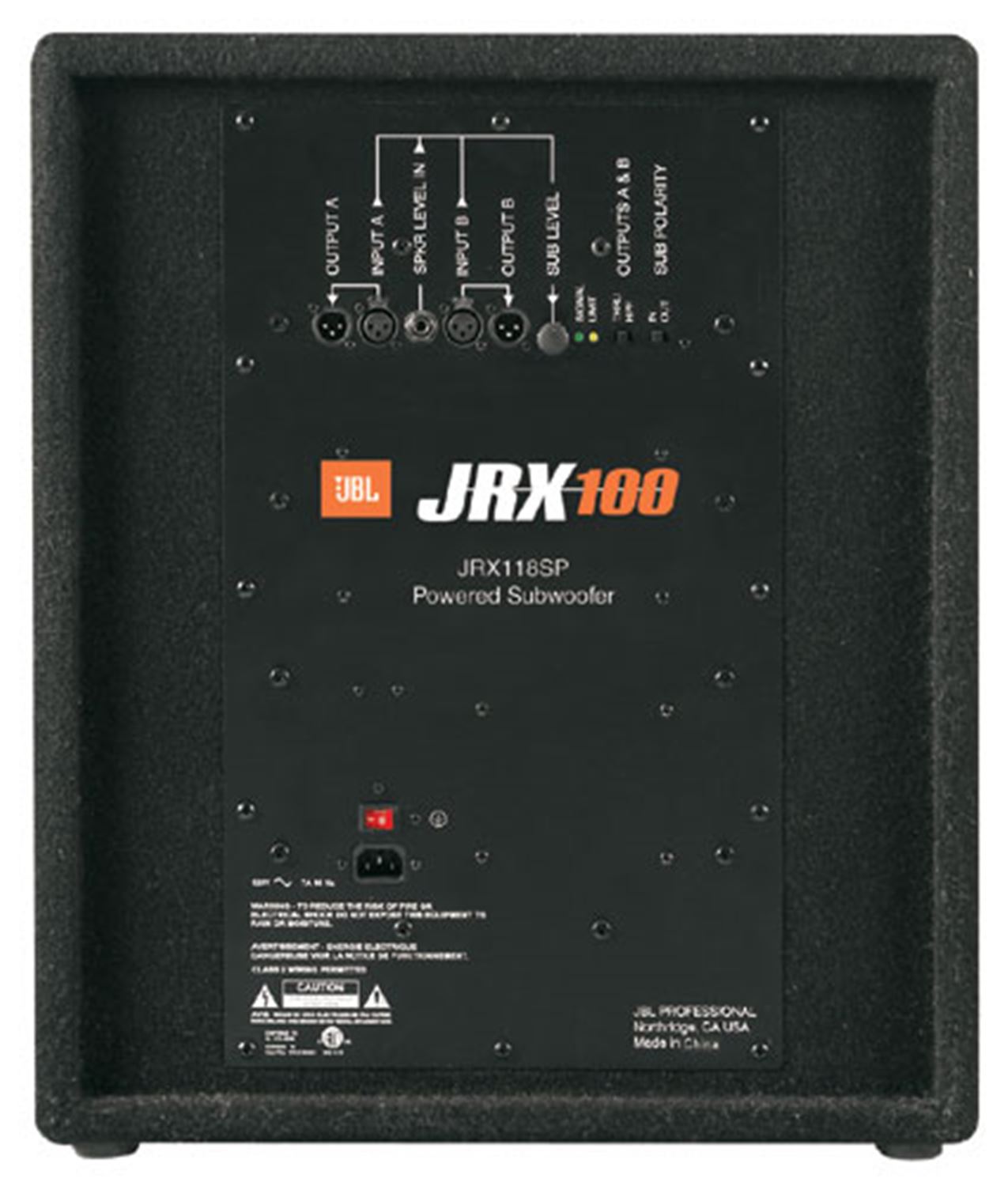 JRX118SP – представляет линейку высокотехнологичных активных сабвуферов довольно известного производителя профессиональной акустики – компании JBL. Связка встроенного массивного 18" вуфера и цифрового усилителя D класса с пассивным охлаждением, позволяет разогнать данную акустику до целых 500 Вт пиковой мощности (RMS 300 Вт) с диапазоном рабочих частот 38 Гц – 300 Гц при -10 дБ и пиковым SPL в 123 дБ. За отладку звучания отвечает многофункциональная панель управления со встроенными механическими регуляторами и кнопками, благодаря которым возможно настраивать фильтры высоких и низких частот, регулировать уровень входного сигнала и переключать фазы. Дополнительно имеется встроенный кроссовер с постоянной частотой в 100 Гц, благодаря которому возможно выделить нужный спектр частот (низкие, средние, высокие), лимитер, который защитит динамик от перегрузок, перегрева и КЗ, а также эквалайзер для более точной частотной регулировки выходного сигнала. Корпус данной акустики имеет фазоинверторный тип и выполнен из МДФ, которая обладает отличными акустическими характеристиками, а также устойчива к механическим повреждениям и царапинам. Лицевая панель корпуса закрыта усиленной перфорированной решеткой, которая защитит низкочастотные динамики от возможных механических повреждений. Боковые панели оборудованы литыми ручками для транспортировки, сверху предусмотрен 35 мм стакан под телескопическую штангу топа, а снизу имеются специальные резиновые ножки для повышения устойчивости.