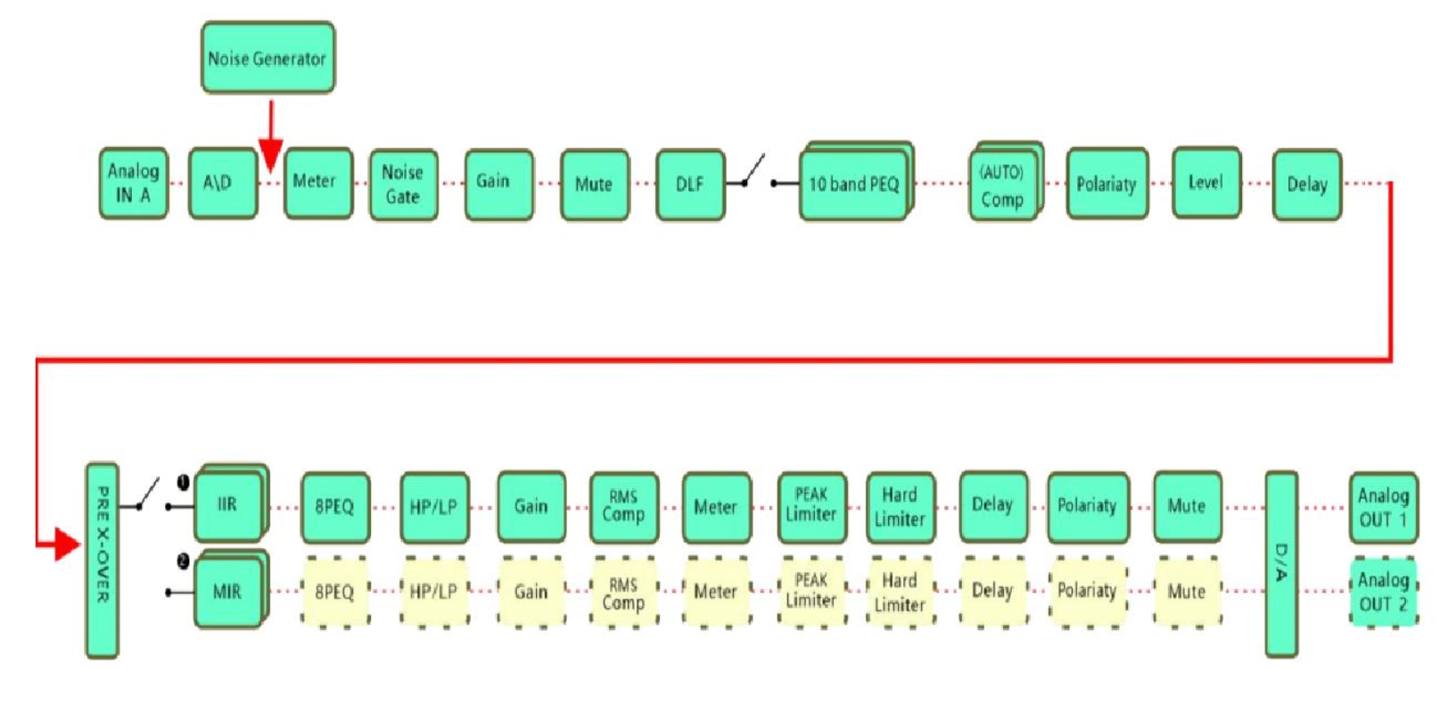 За практически мгновенную обработку сигнала получаемого от источника, отвечает цифровой аудиопроцессор DSP от MARANI, динамический диапазон АЦП и ЦАП = 113 дБ. Процессор предоставляет широчайшие возможности по настройке звучания комплекта, и сабвуфера, и всех подключенных АС. Предусмотрены пресеты для различных сценариев эксплуатации; стандартный набор из регулировки усиления и громкости, настроек задержки, параметрического эквалайзинга, подавления шума, реверберации и т.п.; многие профессиональные виды обработки - комплексная RMS-компрессия, динамический фильтр громкости, IIR-фильтры, уникальный MIR-фильтр и т.п. Подробнее о функциях модуля DSP смотрите в руководстве по эксплуатации. Управление и настройки производятся через единую цифровую среду, в виде специализированного программного обеспечения MAXIMUM, устанавливаемое на ПК, который подключается к сабвуферу через USB-порт. ПО обладает интеллектуальным, интуитивно-понятным, хорошо детализированным интерфейсом.
