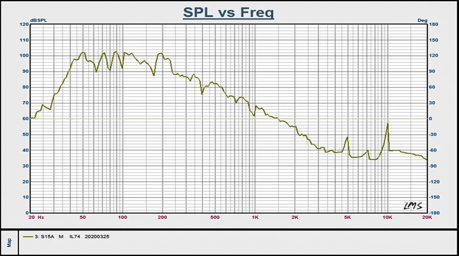 Сабвуфер оснащен НЧ-динамиком диаметром 15". Частотная характеристика воспроизводимых сигналов 35 - 250 Гц, чувствительность 96 дБ, максимальный уровень звукового давления SPL = 128 дБ. Диаграмма направленности имеет сферическую форму. Встроенный усилитель класса D, мощность (RMS) составляет 500 Вт. Встроенный стерео-кроссовер с возможностью регулирования частоты раздела, а также аудиовыходами на две широкополосные АС с сохранением стереосигнала.