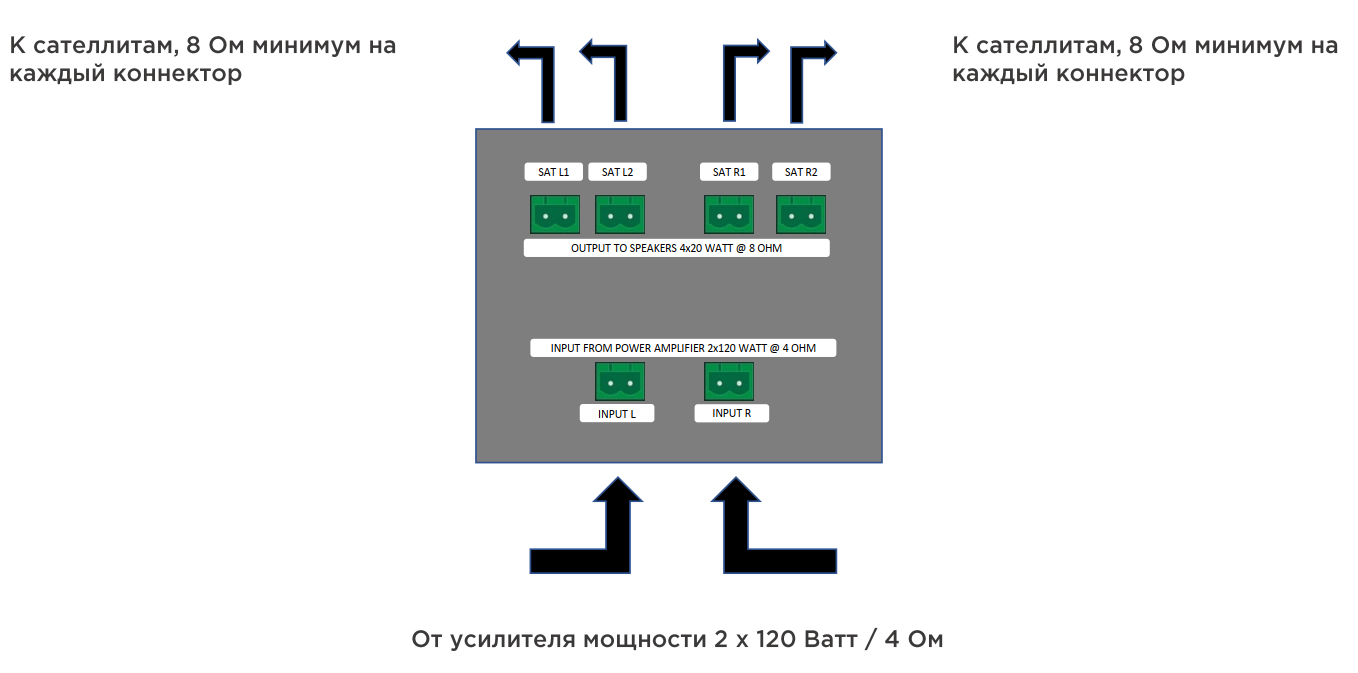 | Мощность на сателлиты, Вт: | 2х 80 |