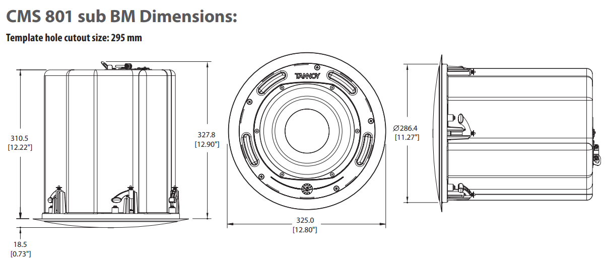 TANNOY CMS 801 BM Sub - мощный пассивный сабвуфер производства компании TANNOY. Используется в системах фонового озвучивания помещений различного назначения, прекрасно работает вместе с потолочными АС серий CMS 1201 и 3.0.