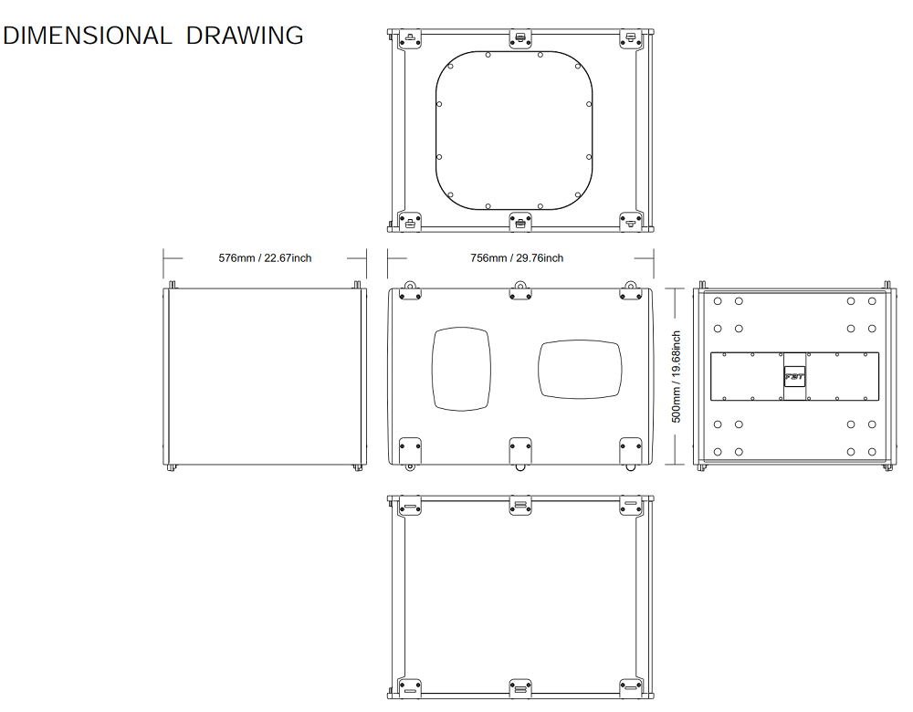 Корпус выполнен из многослойной фанеры балтийской березы толщиной 18 мм, стальная решетка с порошковым окрасом защищает лицевую часть. Габаритные размеры 576x538x756 мм, вес 43 кг. Монтаж напольный или на подвес MT-F 212 с направлением "вперед". Для удобства переноса предусмотрены ручки. Черный цвет.