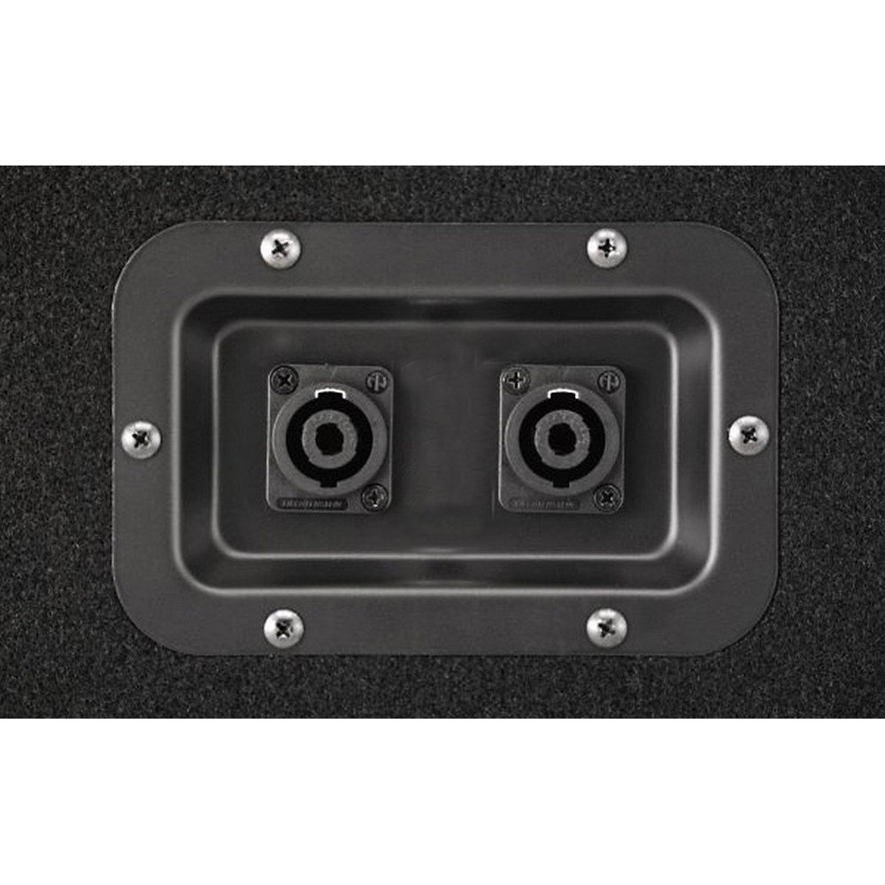 Корпус выполнен из многослойной фанеры балтийской березы толщиной 18 мм, стальная решетка с порошковым окрасом защищает лицевую часть. Габаритные размеры 574х594х730 мм, вес 45 кг. Монтаж напольный или на акустические стойки (есть стакан под резьбу М20). Для удобства переноса предусмотрены ручки. Черный цвет.