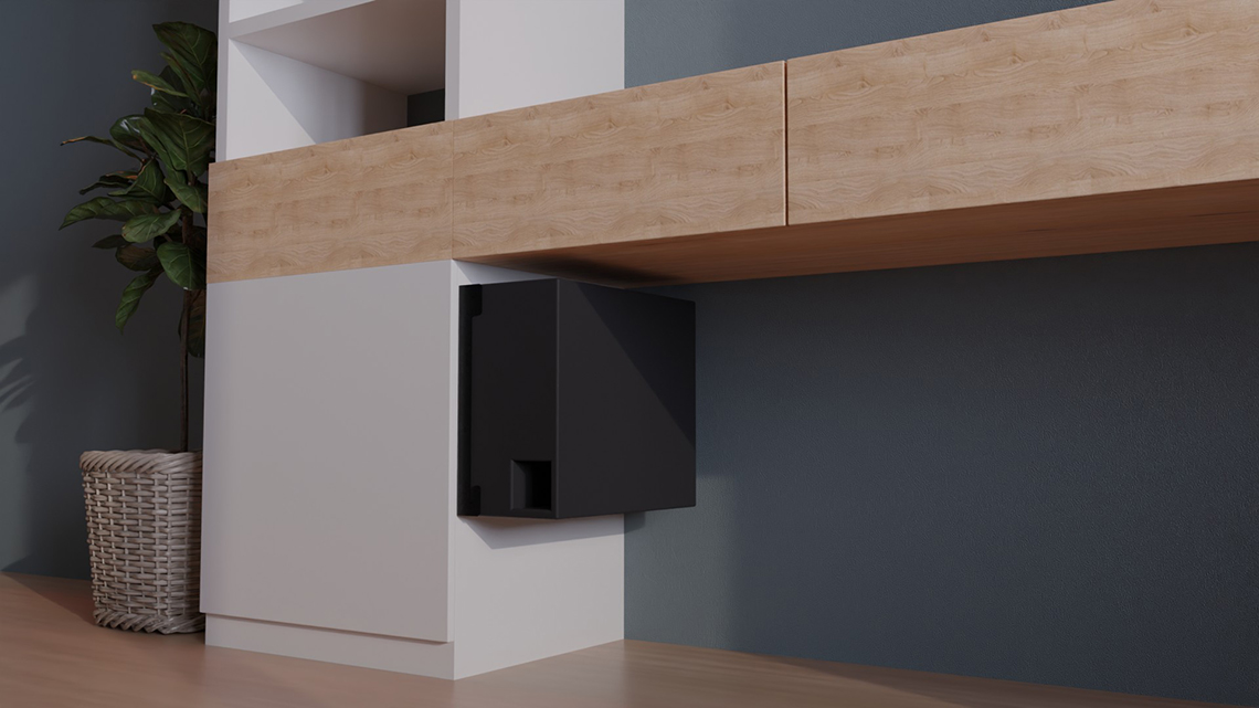 САБ80/8Б имеет стильный дизайн и компактные габаритные размеры: 163х309х350 мм, вес 8.7 кг. Белый цвет. Предусмотрено несколько вариантов монтажа: настенный/потолочный, с помощью штатного кронштейна позволяющего крепить сабвуфер разными сторонами корпуса; напольный, для чего в комплекте поставляются самоклеящиеся ножки.