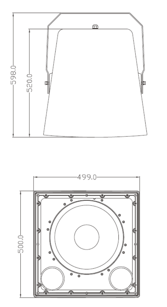 Один НЧ-динамик диаметром 15". Частотная характеристика воспроизводимых сигналов 45 - 300 Гц, чувствительность на уровне 98 дБ, максимальный уровень звукового давления SPL = 130 дБ. Дисперсия с углами 60° в горизонтальной плоскости и 40° в вертикальной.