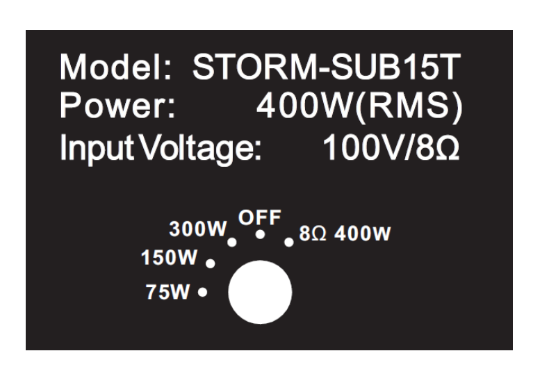 Сабвуфер оснащен трансформатором, благодаря чему может использоваться как в низкоомных линиях с импедансом 8 Ом, так и в трансляционных с рабочим напряжением 100В. Мощность зависит от типа подключения: в низкоомном режиме (8 Ом) 400 Вт; при трансляционном применении мощность выбирается селектором между значениями 75 / 150 / 300 Вт.