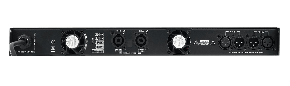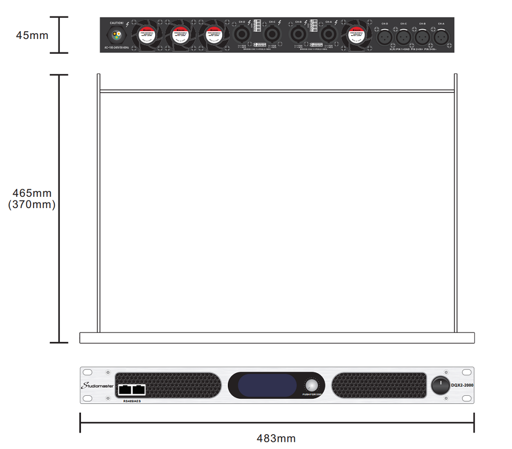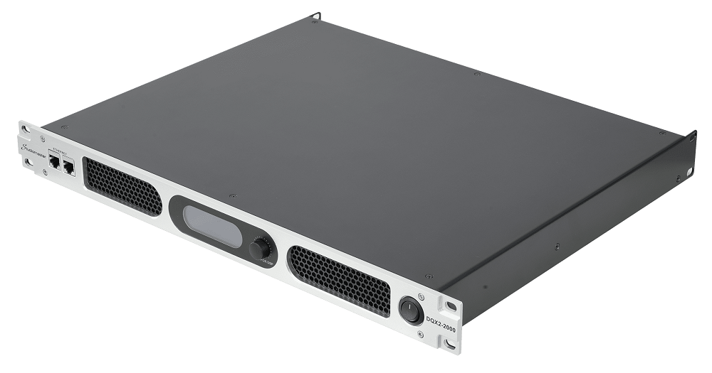 Усилитель DQX2-4000 оснащен защитой от перегрузки, перегрева, постоянного выходного тока и короткого замыкания. Также есть лимитер. Питание ~ 220 В, за охлаждение отвечают два вентилятора с автоматически регулируемой скоростью. Габаритные размеры 483x44x370 мм; рэковый размер 1U, вес 9 кг. Энергоэффективность ~95%.