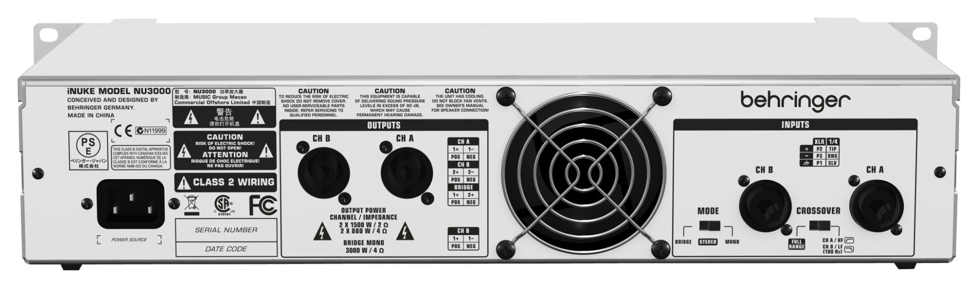 iNUKE NU3000 – это двухканальный усилитель мощности D класса от известной компании BEHRINGER. Он способен выдавать мощность порядка 3000 Вт, имеет довольно высокую производительность и идеальное качество звучания. Два независимых канала обеспечивают подключение акустических систем и имеют встроенный кроссовер, для корректного подключения сателлитов или сабвуферов. Также данный усилитель имеет довольно высокую надежность, оборудован системой активного охлаждения, имеет защиту каждого канала по току, низкочастотным искажениям, термической перегрузке и обеспечивает возможность безопасного подключения акустических систем без снятия питания. Он имеет большую популярность как у профессиональных, так и у обычных пользователей благодаря низкой цене, высокому качеству компонентов и надежности.