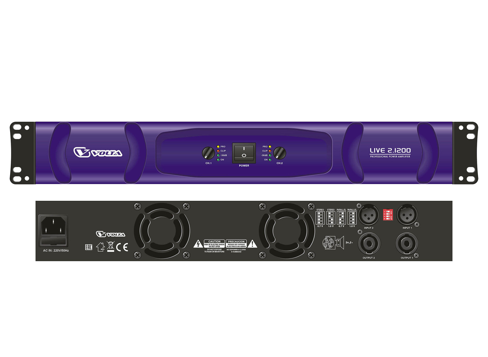 VOLTA LIVE 2.1200 - это профессиональный двухканальный усилитель мощности класса D, который подходит для создания на его базе системы озвучивания коммерческих помещений: рестораны и кафе, магазины, бутики и другие виды торговых площадей, офисные пространства и т.д., и т.п.; к тому же, благодаря малому весу и компактным габаритам, усилители серии LIVE часто применяют в мобильных звуковых комплектах.