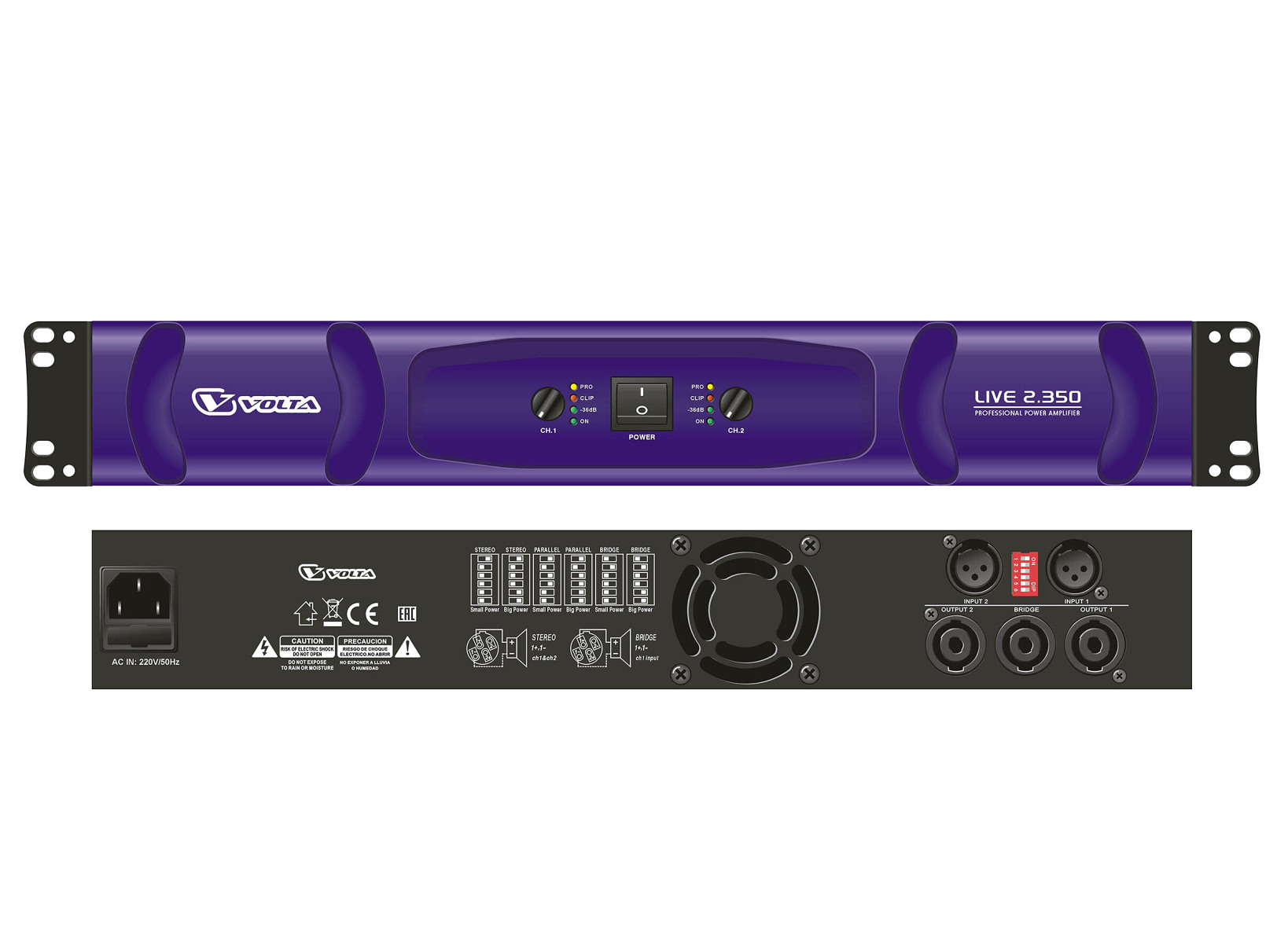 VOLTA LIVE 2.350 - это профессиональный двухканальный усилитель мощности класса D, который подходит для создания на его базе системы озвучивания коммерческих помещений: рестораны и кафе, магазины, бутики и другие виды торговых площадей, офисные пространства и т.д., и т.п.; к тому же, благодаря малому весу и компактным габаритам, усилители серии LIVE часто применяют в мобильных звуковых комплектах.