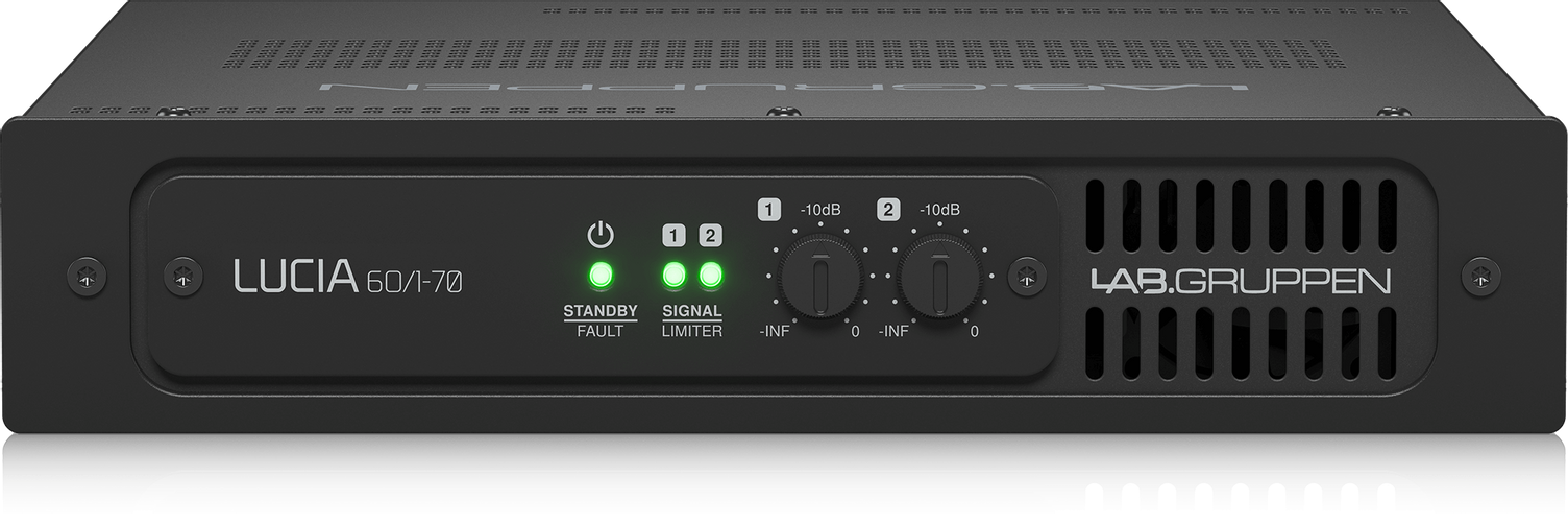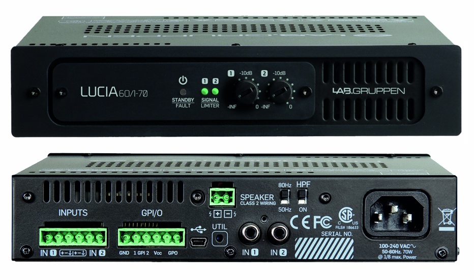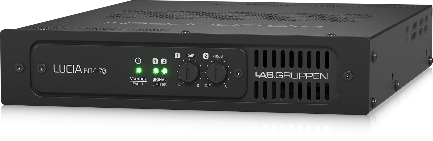 LUCIA 60/1-70 - это компактный одноканальный усилитель со встроенным аудиопроцессором (DSP) из серии усилителей LUCIA производства компании LAB.GRUPPEN, Швеция. Для своих размеров обладает прекрасными характеристиками и высокой точностью мощности. Отлично подойдет для построения небольшой системы звукофикации коммерческих объектов: кафе, бары, магазины, учебные комнаты и т.п. Рабочий диапазон частот 5 Гц - 22 кГц.