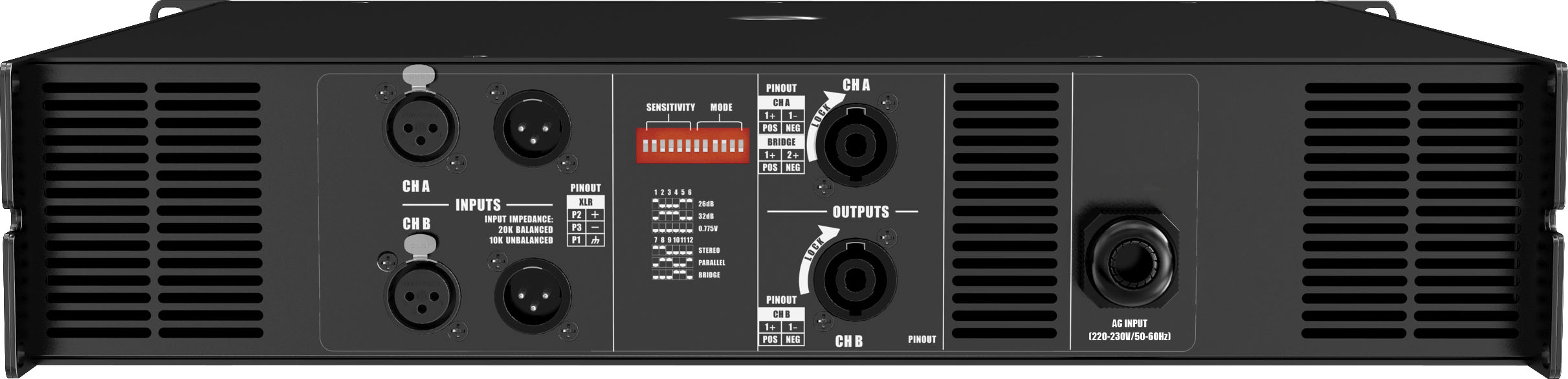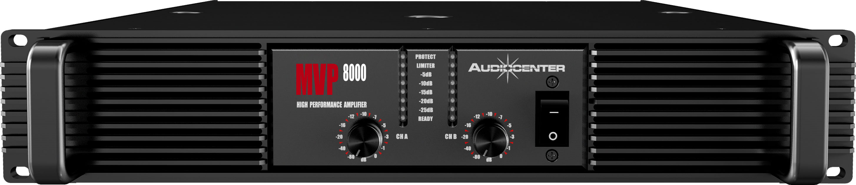 MVP 8000 – это двухканальный усилитель мощности H+ класса от известной компании AUDIOCENTER. Он представлен в сегменте бюджетного звукового оборудования, имеет два независимых канала для подключения акустических систем, обеспечивает Hi-Fi качество звучания, разработан с использованием высококачественных компонентов и выделяется высокой технологичностью, гибкостью и надежностью. Номинальная выходная мощность усилителя, при стерео подключении, составляет порядка 800/1200/1600 Вт на один канал при сопротивлении нагрузки 8/4/2 Ом соответственно. Также имеется возможность мостового подключения на нагрузку 2400/3200 Вт при сопротивлении 8 и 4 Ом соответственно. Для обеспечения защиты акустических систем и самого усилителя от перегрузки, предусмотрена уникальная в своем роде комплексная система защиты A-Guard, которая работает совместно с другими системами защиты и включается лишь в случае опасности. Также имеется система защита от перегрева – Smart Overheat Management, которая разработана инженерами компании AUDIOCENTER и позволяет в режиме реального времени отслеживать изменения температуры усилителя. Эта система, в случае необходимости, мгновенно включает активную систему охлаждения или понижает выходную мощность усилителя, не прерывая его работу. Таким образом, благодаря высокой надежности и относительно низкой себестоимости, данный усилитель является одним из лучших устройств в своем классе, идеально подойдет для студийной установки (рестораны, кафе, ночные клубы и т.п.) или для разовой установки (гастроли).