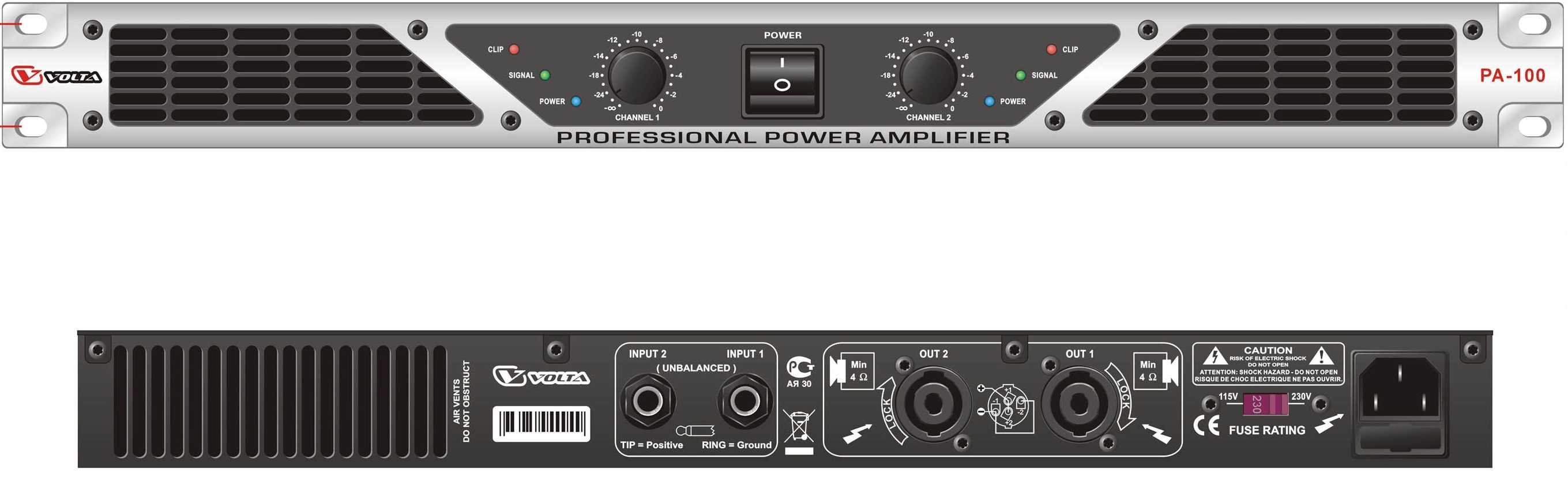 VOLTA PА-100 - это профессиональный двухканальный усилитель мощности с выходным каскадом класса AB. Подходит для создания на его базе системы озвучивания коммерческих помещений: рестораны и кафе, магазины, супермаркеты, бутики и другие виды торговых площадей, офисы, лобби отелей, залы ожидания т.д., и т.п.