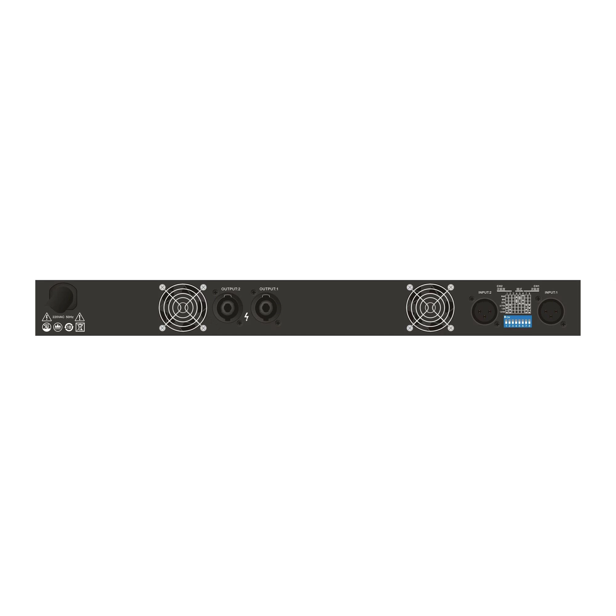 Аудиовходы (2 шт.) реализованы на балансном разъёме XLR (импеданс 20 кОм) и небалансном XLR (импеданс 10 кОм); аудиовыходы 2х SPEAKON. Коннекторы размещены на тыльной части корпуса. На передней панели предусмотрена светодиодная индикация и два регулятора для ручного изменения уровня усиления в случае необходимости.