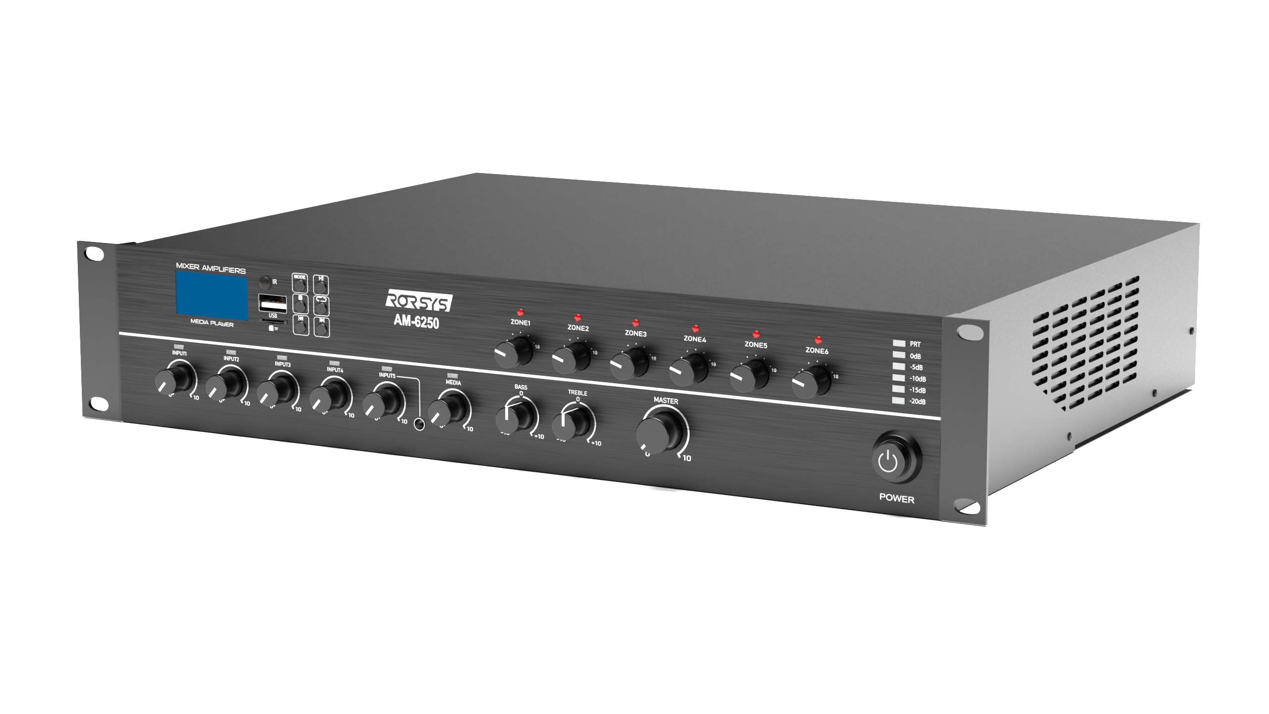 AM-6250 - это зональный микшер-усилитель производства компании RORSYS. Обладает отличными характеристиками, высокой точностью мощности и встроенным медиаплеером, что позволяет строить на его базе разветвленные системы музыкально-речевых трансляций с вещанием в нескольких зонах (до 6) на различных объектах: рестораны и кафе, АЗС, магазины, лобби отелей, банковские и офисные помещения, залы ожидания и т.д., и т.п.
