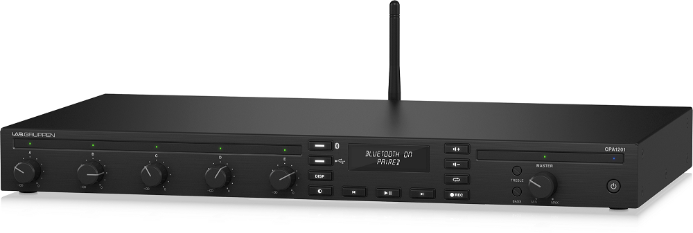 CPA1201 - это одноканальный микшер-усилитель класса D из серии инсталляционных усилителей производства компании LAB.GRUPPEN, Швеция. Обладает прекрасными характеристиками, высокой точностью мощности и гибкими возможностями микширования входных сигналов: 5 входов на 1 выход. Встроенный медиаплеер позволяет воспроизводить MP3-файлы (и другие форматы) размещенные на USB-носителе или же принятые беспроводным способом по технологии Bluetooth (дальность действия до 15 м). Усилитель отлично подойдет для построения систем звукофикации коммерческих объектов: рестораны, кафе, отели, супермаркеты, ТРЦ/БЦ и т.п. Рабочий диапазон частот 20 Гц - 20 кГц.