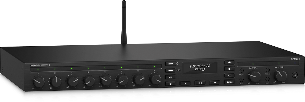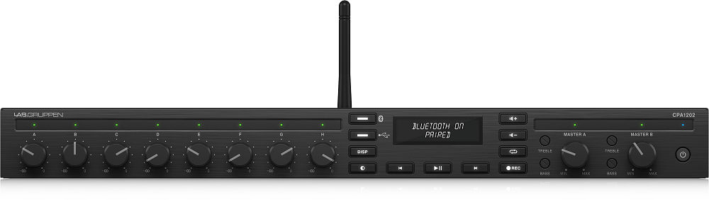 CPA1202 - это двухканальный микшер-усилитель класса D из серии инсталляционных усилителей производства компании LAB.GRUPPEN, Швеция. Обладает прекрасными характеристиками, высокой точностью мощности и гибкими возможностями микширования входных сигналов: 8 входов и 2 выхода. Встроенный медиаплеер позволяет воспроизводить MP3-файлы (и другие форматы) размещенные на USB-носителе или же принятые беспроводным способом по технологии Bluetooth (дальность действия до 15 м). Усилитель отлично подойдет для построения систем звукофикации коммерческих объектов: рестораны, кафе, отели, супермаркеты, ТРЦ/БЦ и т.п. Рабочий диапазон частот 20 Гц - 20 кГц.