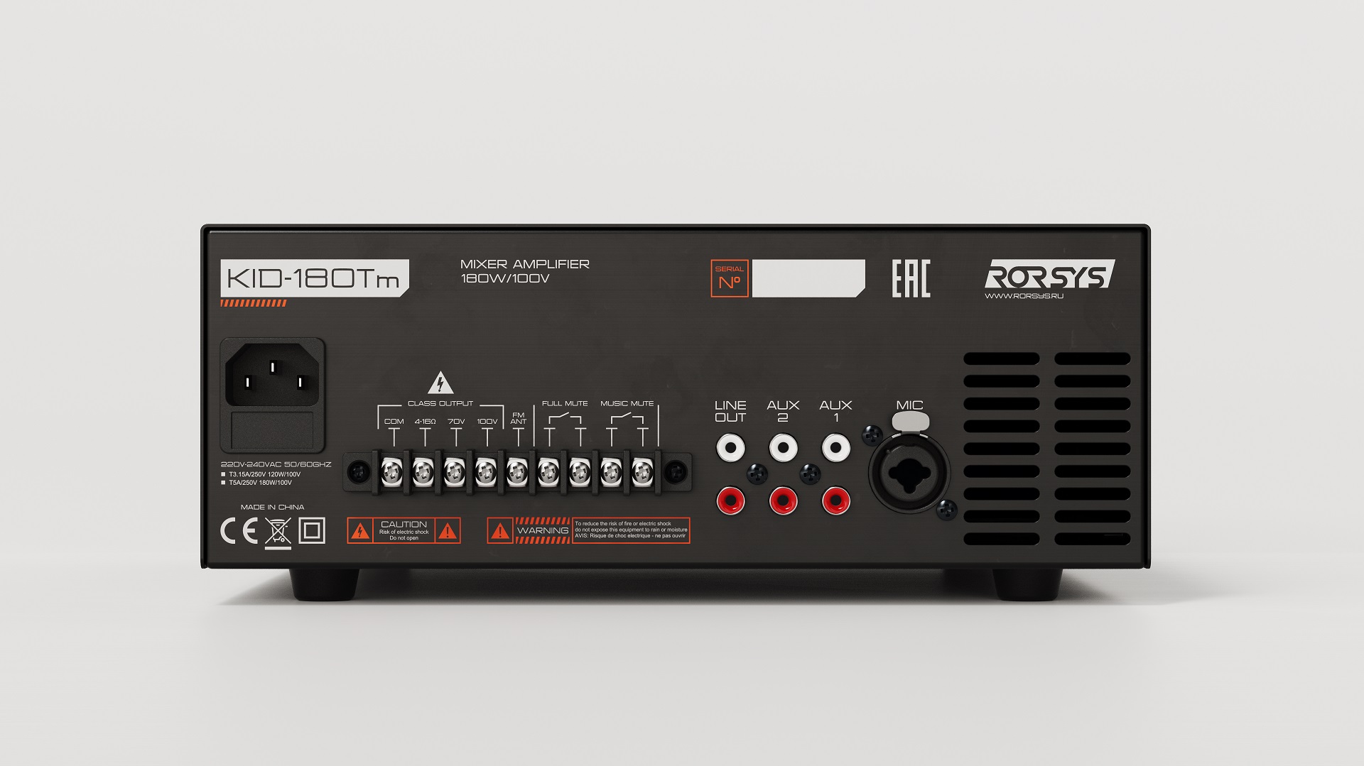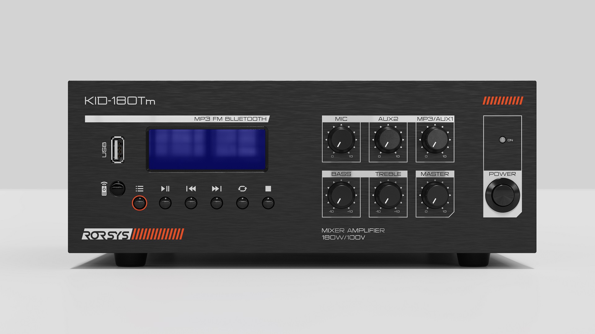 KID-180Tm - это микшер-усилитель производства компании RORSYS. Обладает прекрасными характеристиками, высокой точностью мощности и встроенным медиаплеером, что позволяет строить на его базе системы музыкально-речевых трансляций для различных объектов: залы ресторанов и кафе, АЗС, магазины, лобби отелей, банковские помещения и т.д., и т.п.