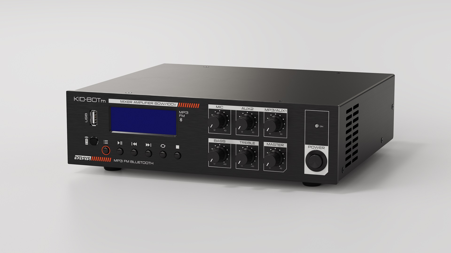 KID-80Tm - это микшер-усилитель производства компании RORSYS. Обладает прекрасными характеристиками, высокой точностью мощности и встроенным медиаплеером, что позволяет строить на его базе системы музыкально-речевых трансляций для различных объектов: залы ресторанов и кафе, АЗС, магазины, лобби отелей, банковские помещения и т.д., и т.п.