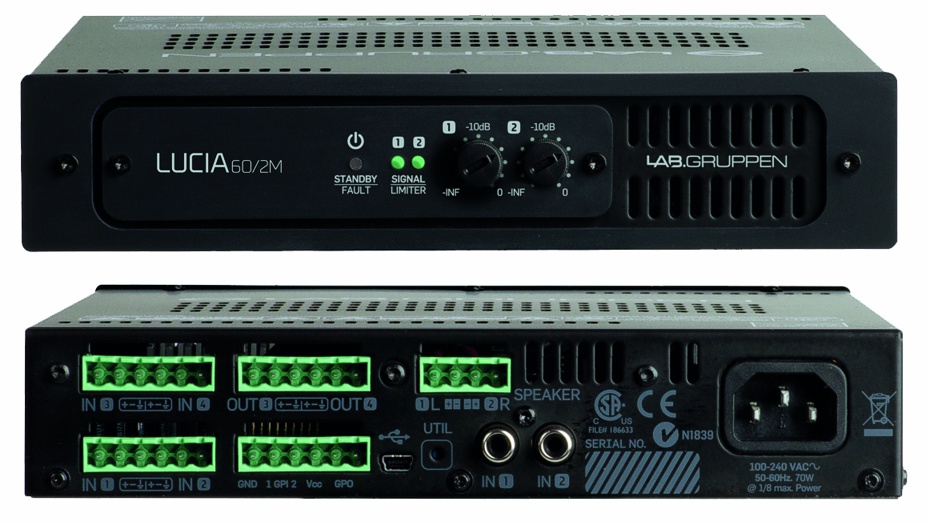 LUCIA 60/2М - это компактный двухканальный микшер-усилитель со встроенным аудиопроцессором (DSP) из серии усилителей LUCIA производства компании LAB.GRUPPEN, Швеция. Для своих размеров обладает прекрасными характеристиками и высокой точностью мощности. Отлично подойдет для построения небольшой системы звукофикации (2 зоны) коммерческих объектов: кафе, бары, магазины, учебные комнаты и т.п. Рабочий диапазон частот 5 Гц - 22 кГц.