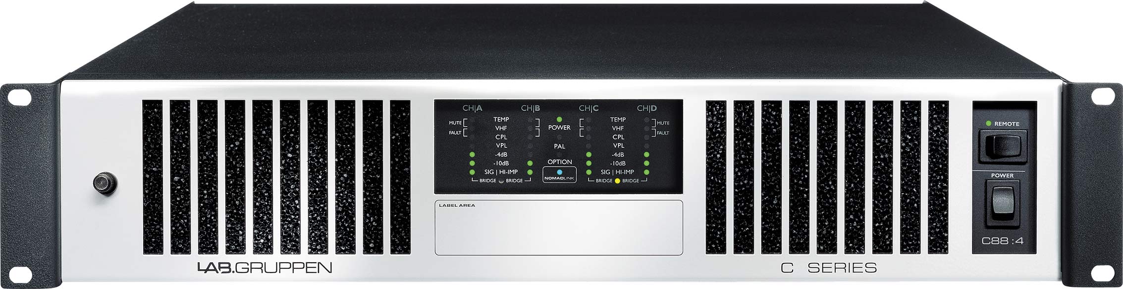C 88:4 - это высокомощный четырехканальный усилитель из серии универсальных инсталляционных усилителей производства компании LAB.GRUPPEN, Швеция. Обладает гибкими настройками выходной мощности и режима работы, что позволяет эффективно строить на его базе системы звукофикации для помещений разнообразного назначения: аудитории и зрительные залы, конференц-центры, стадионы и арены, рестораны, отели, музеи, религиозные учреждения, учебные заведения, залы заседаний, офисы, клубы, торговые центры и т.д. Класс D, рабочий диапазон частот 6.8 Гц - 34 кГц.