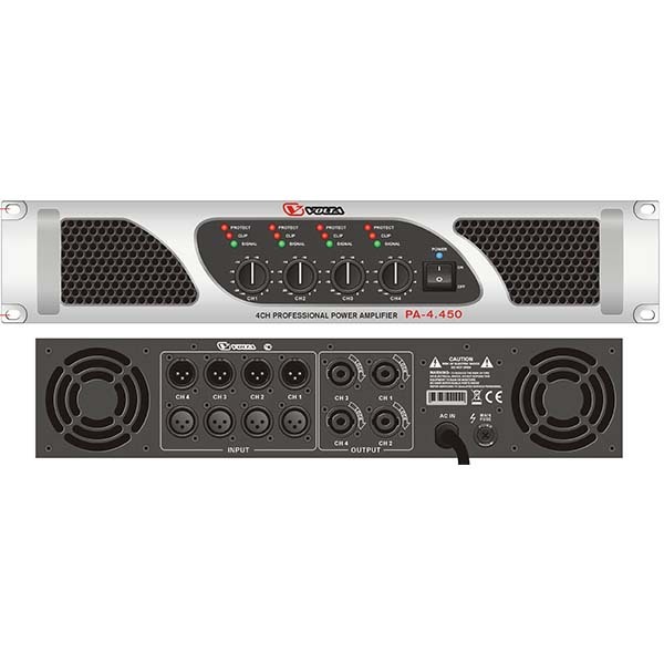 VOLTA PА-4.450 - это профессиональный четырехканальный усилитель мощности с выходным каскадом класса AB. Подходит для создания на его базе системы озвучивания коммерческих помещений: рестораны и кафе, магазины, супермаркеты, бутики и другие виды торговых площадей, офисы, лобби отелей, залы ожидания т.д., и т.п.