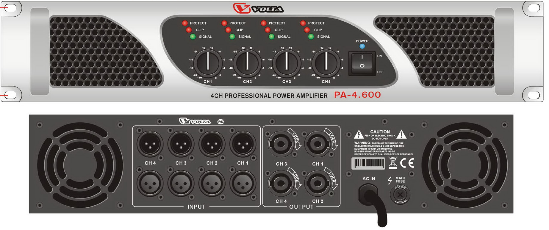 VOLTA PА-4.600 - это профессиональный четырехканальный усилитель мощности с выходным каскадом класса AB. Подходит для создания на его базе системы озвучивания коммерческих помещений: рестораны и кафе, магазины, супермаркеты, бутики и другие виды торговых площадей, офисы, лобби отелей, залы ожидания т.д., и т.п.