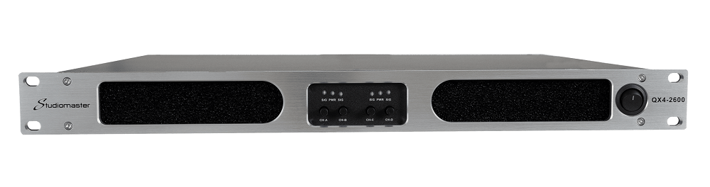 STUDIOMASTER QX4-2600 - это профессиональный четырехканальный усилитель мощности класса D, который подходит для озвучивания больших площадей (например, торговых или учебных) и применения на масштабных мероприятиях: концертах, клубных выступлениях и т.д. Частотная характеристика 20 Гц - 20 кГц (при 8 Ом и 10% номинальной мощности).
