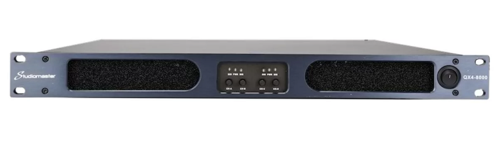 STUDIOMASTER QX4-8000 - это профессиональный четырехканальный усилитель мощности класса D, который подходит для озвучивания больших площадей (например, торговых или учебных) и применения на масштабных мероприятиях: концертах, клубных выступлениях и т.д. Частотная характеристика 20 Гц - 20 кГц (при 8 Ом и 10% номинальной мощности).
