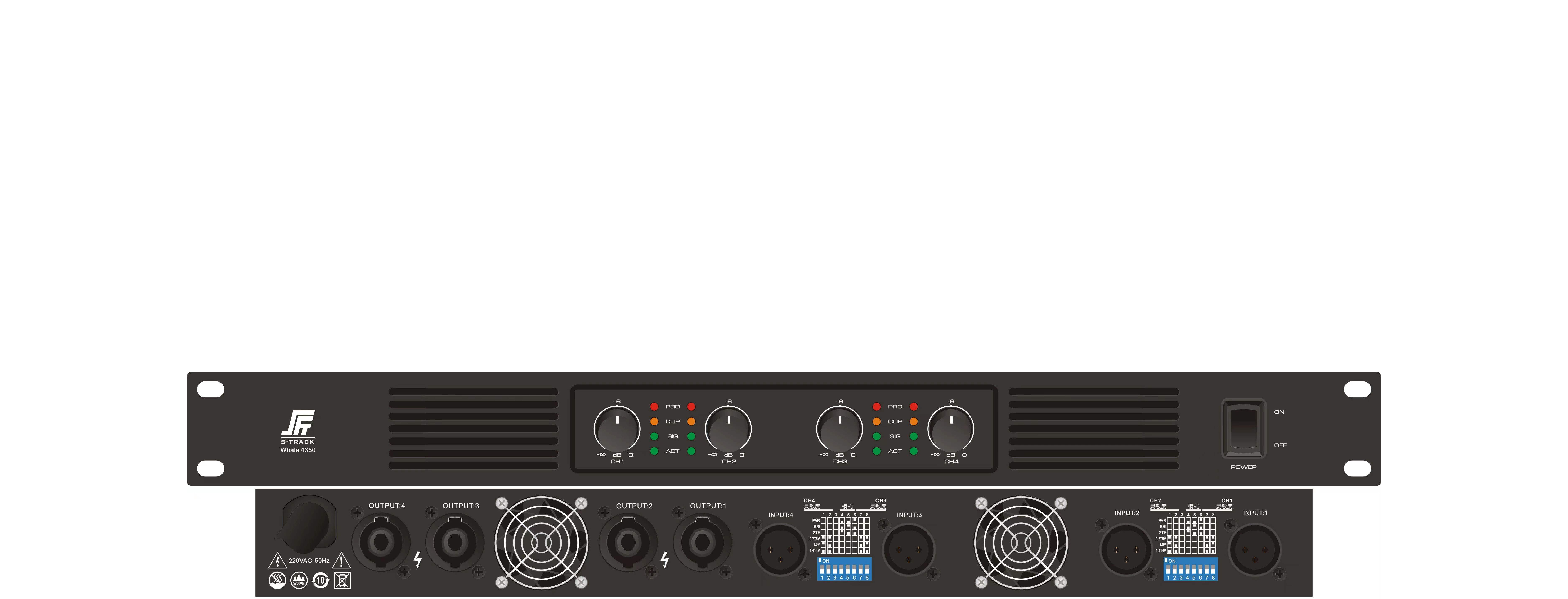 S-Track Whale 4350 - это цифровой четырехканальный (4 канала) усилитель класса D из профессиональной серии Whale производства компании S-Track. Обладает прекрасными характеристиками и точной мощностью. Подходит для совместной работы с аудиопроцессорами производства S-Track (например, серия Swift).