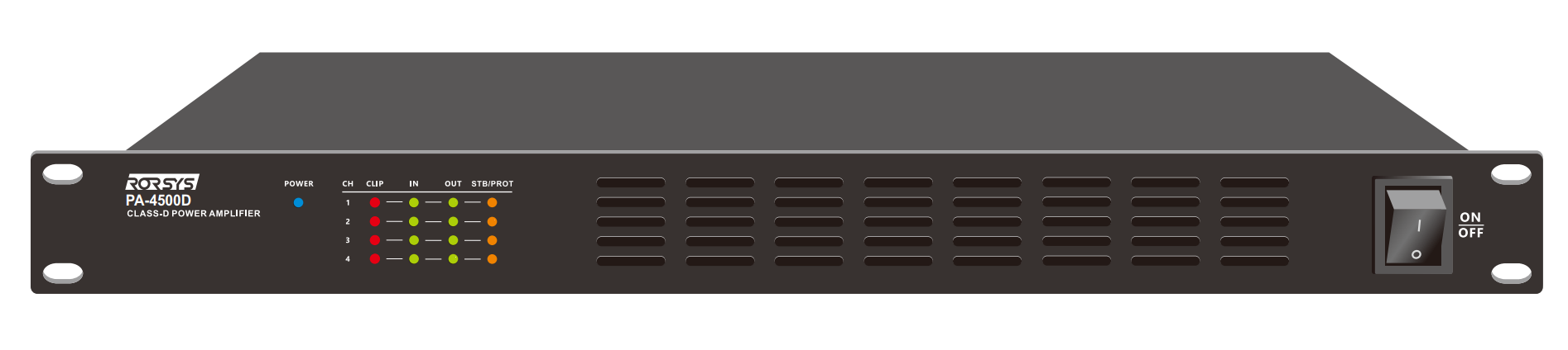 PA-4500D - это высокоэффективный трансляционный усилитель мощности класса D производства компании RORSYS. Является основным прибором, который вместе с источниками звука позволяет строить разветвленные системы музыкально-речевых трансляций для различных объектов: залы ресторанов и кафе, включая с живыми выступлениями, бутики, лобби отелей, банковские помещения, премиум-залы и т.д., и т.п.